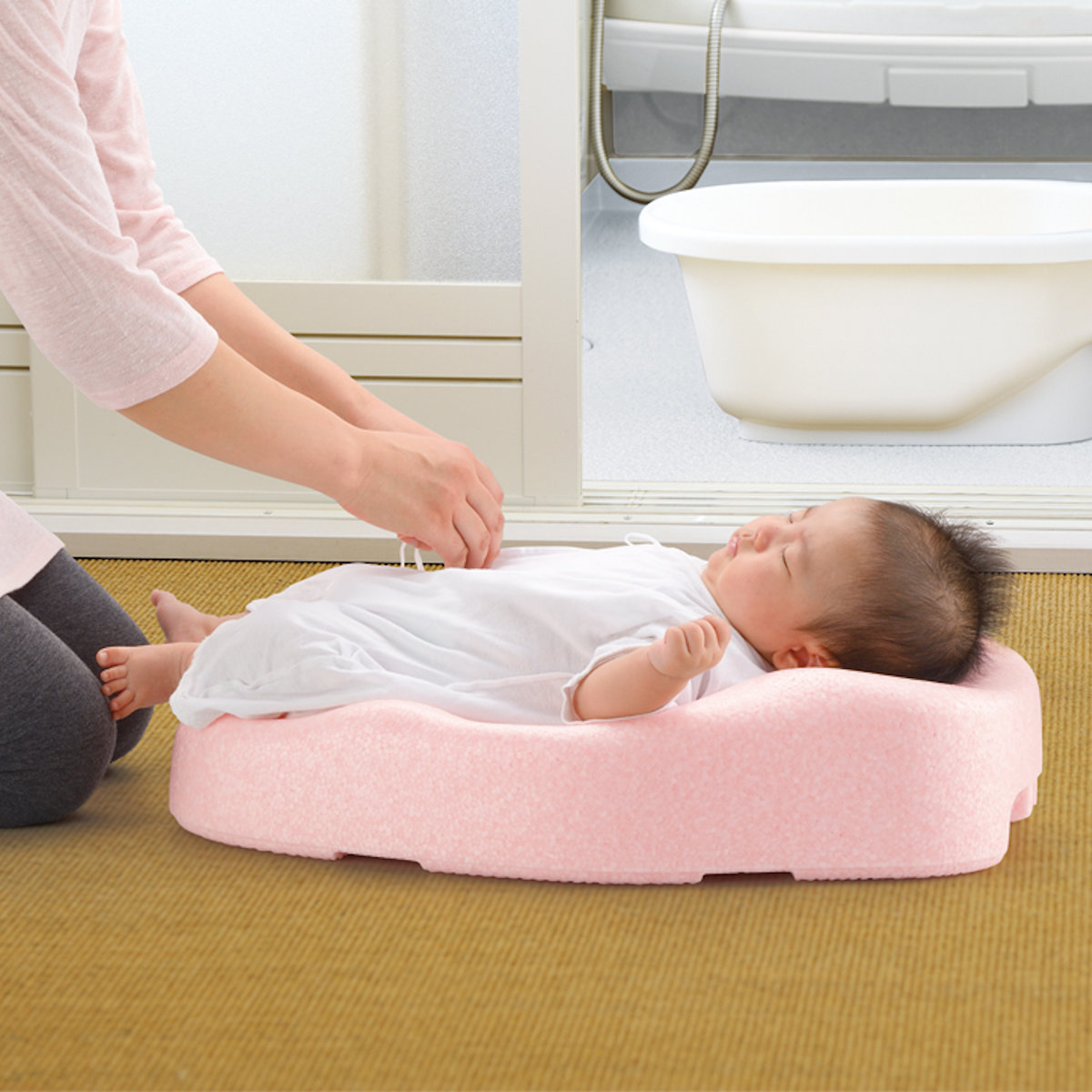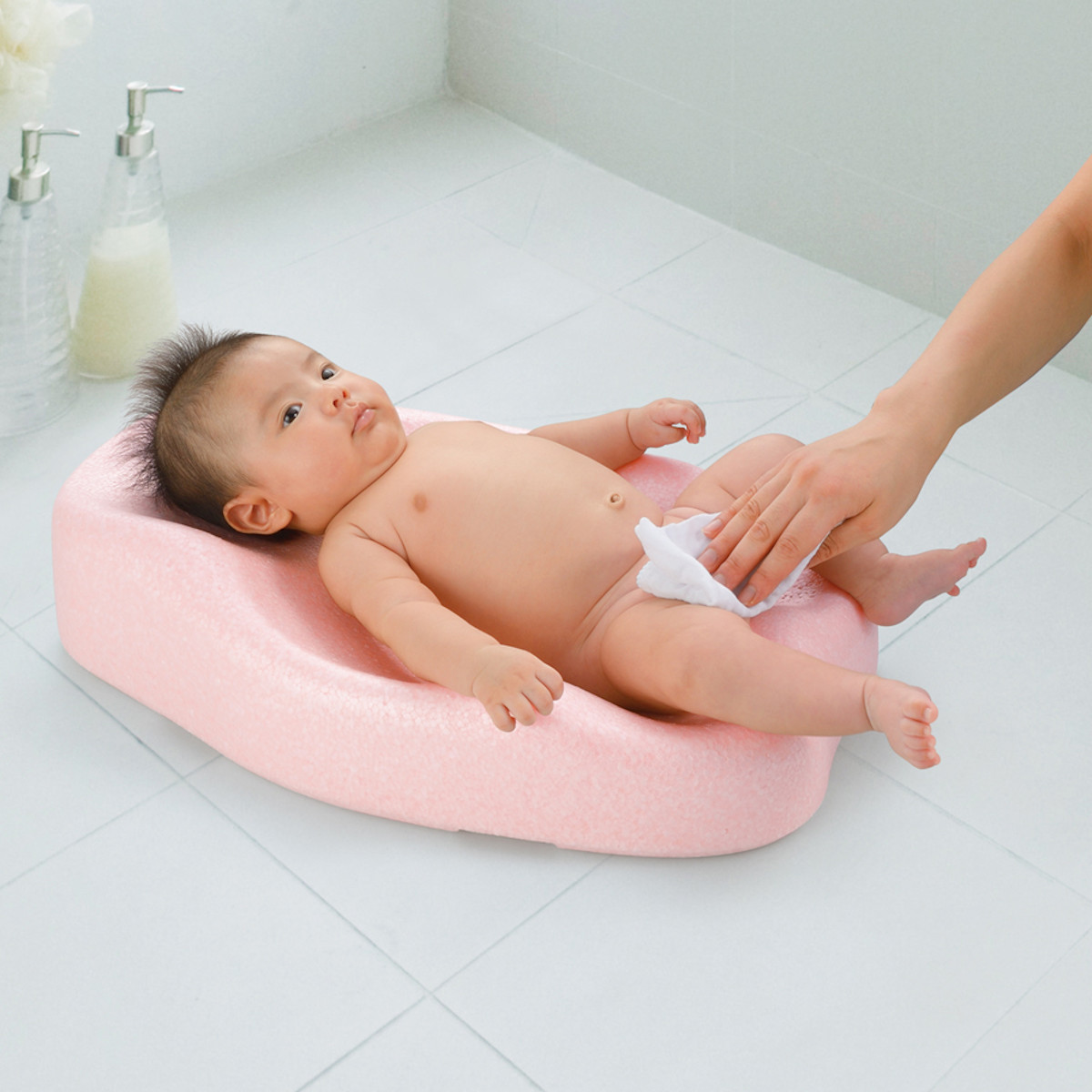 ●寝ている赤ちゃんにお湯はねがかかりにくく衛生的です。