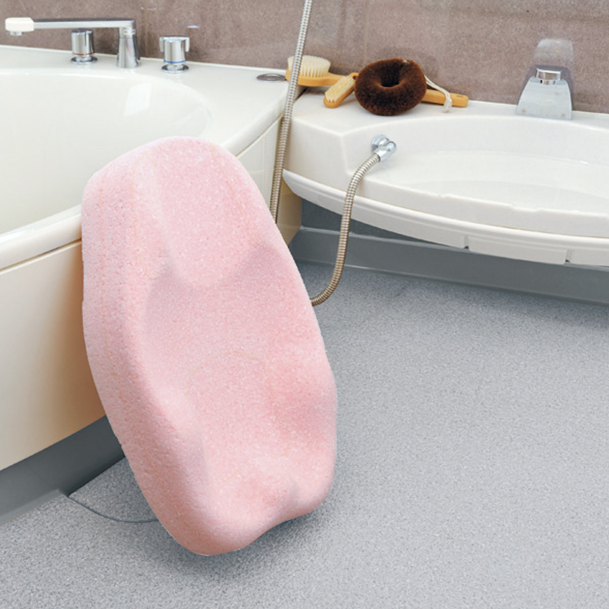 ●保温性のある発泡素材でできた、ヒンヤリしないおふろマットです。
