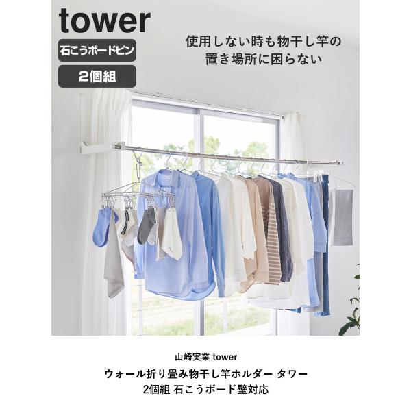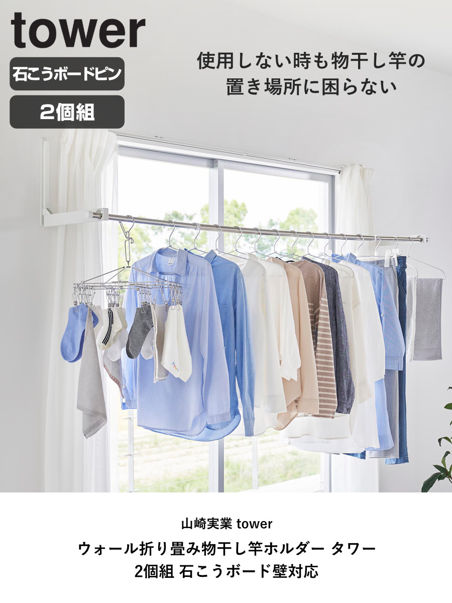 壁対応 石こうボード 物干し竿ホルダー 竿ホルダー 2個 4903208019224 yamazaki towerシリーズ 山実 YAMAZAKI 山崎 やまじつ ホワイト ブラック 白 黒 モノトーン 無地 スタイリッシュ シンプル 2個セット 部屋干し 室内干し LH9966 LH14614
