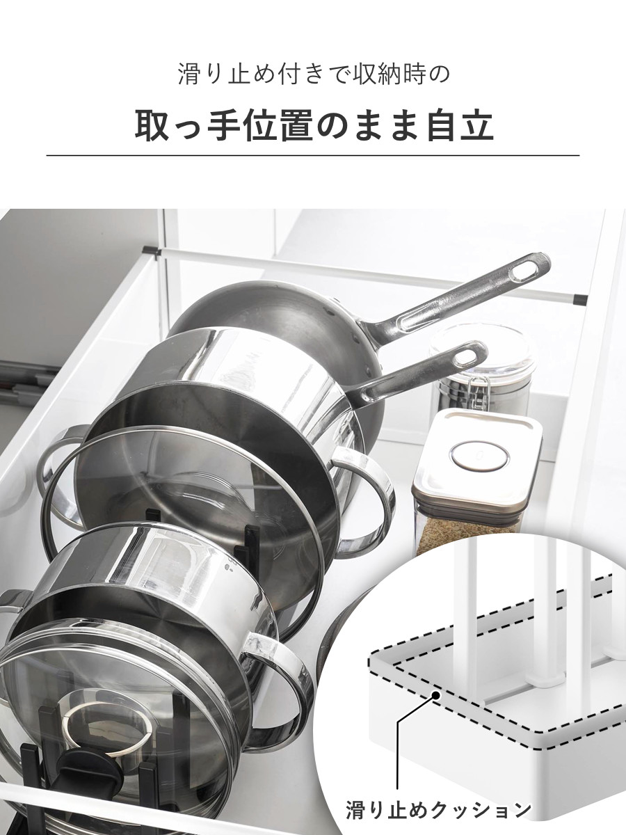 ●鍋蓋やフライパンを立てて収納できるスタンドです。