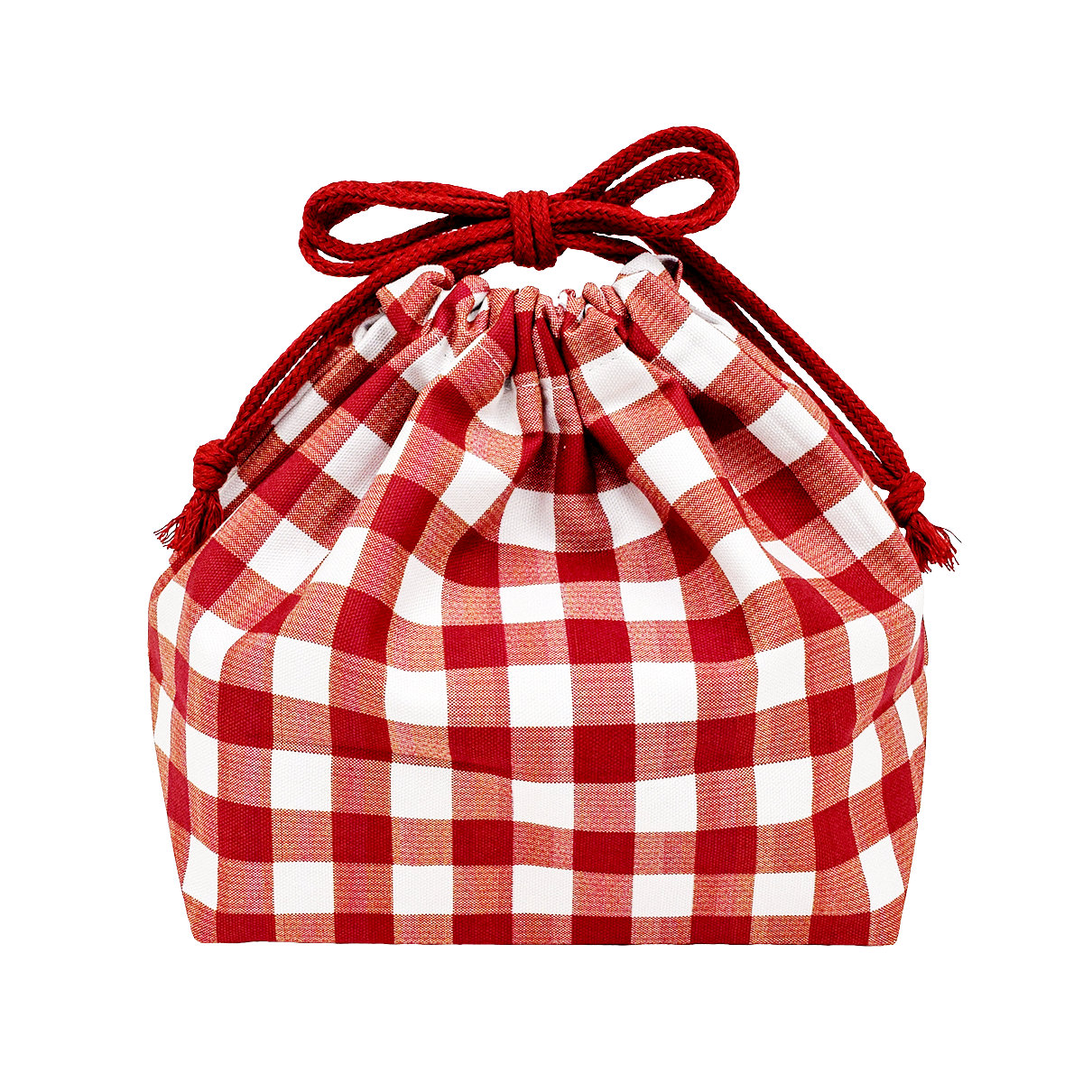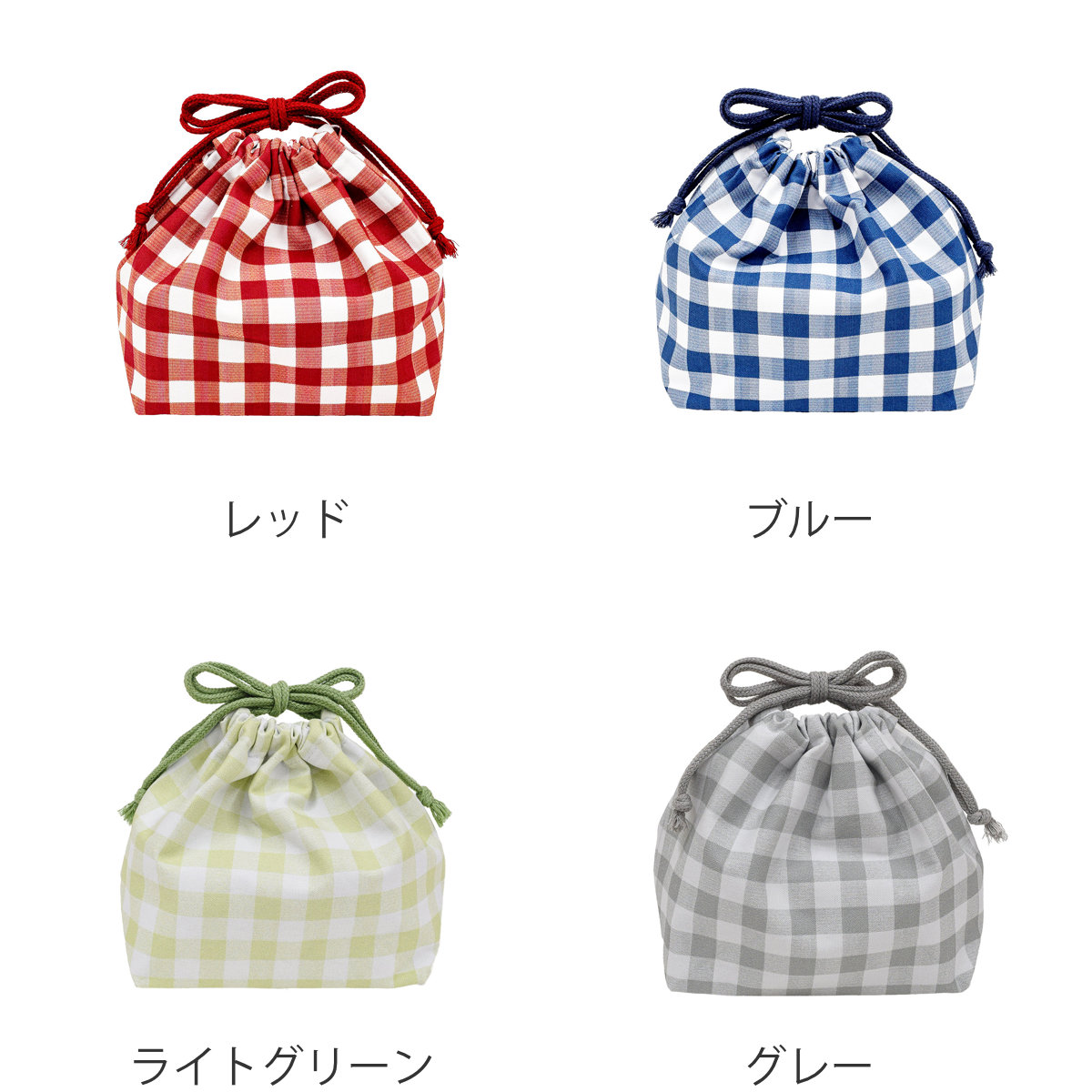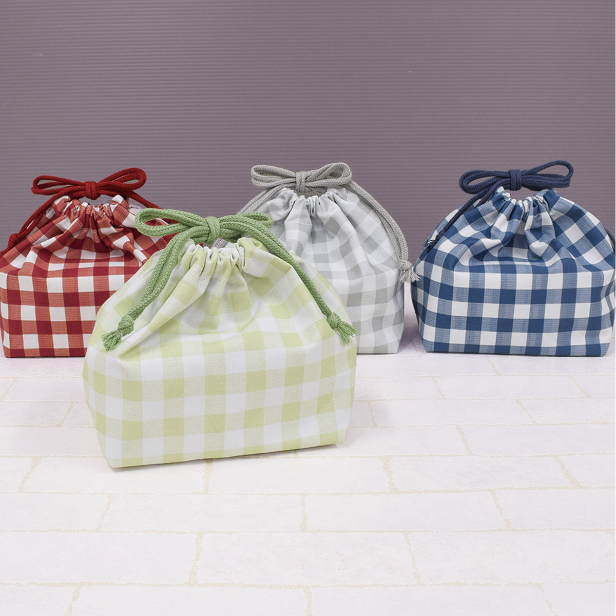 ●シンプルなお弁当箱にピッタリ合う定番のチェック柄のランチ巾着です。