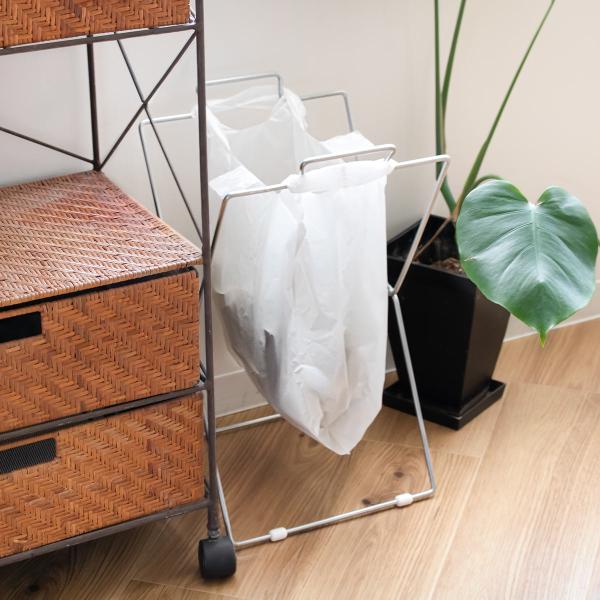 ゴミ袋を引っ掛けるだけで便利に使えるレジ袋スタンド