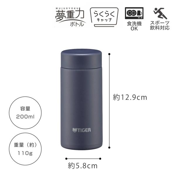 タイガー 水筒 200ml 真空断熱ボトル スリムマグ MMP-W021 ( タイガー魔法瓶 保温 保冷 パッキン一体 食洗機対応 マグボトル 直飲み おしゃれ )