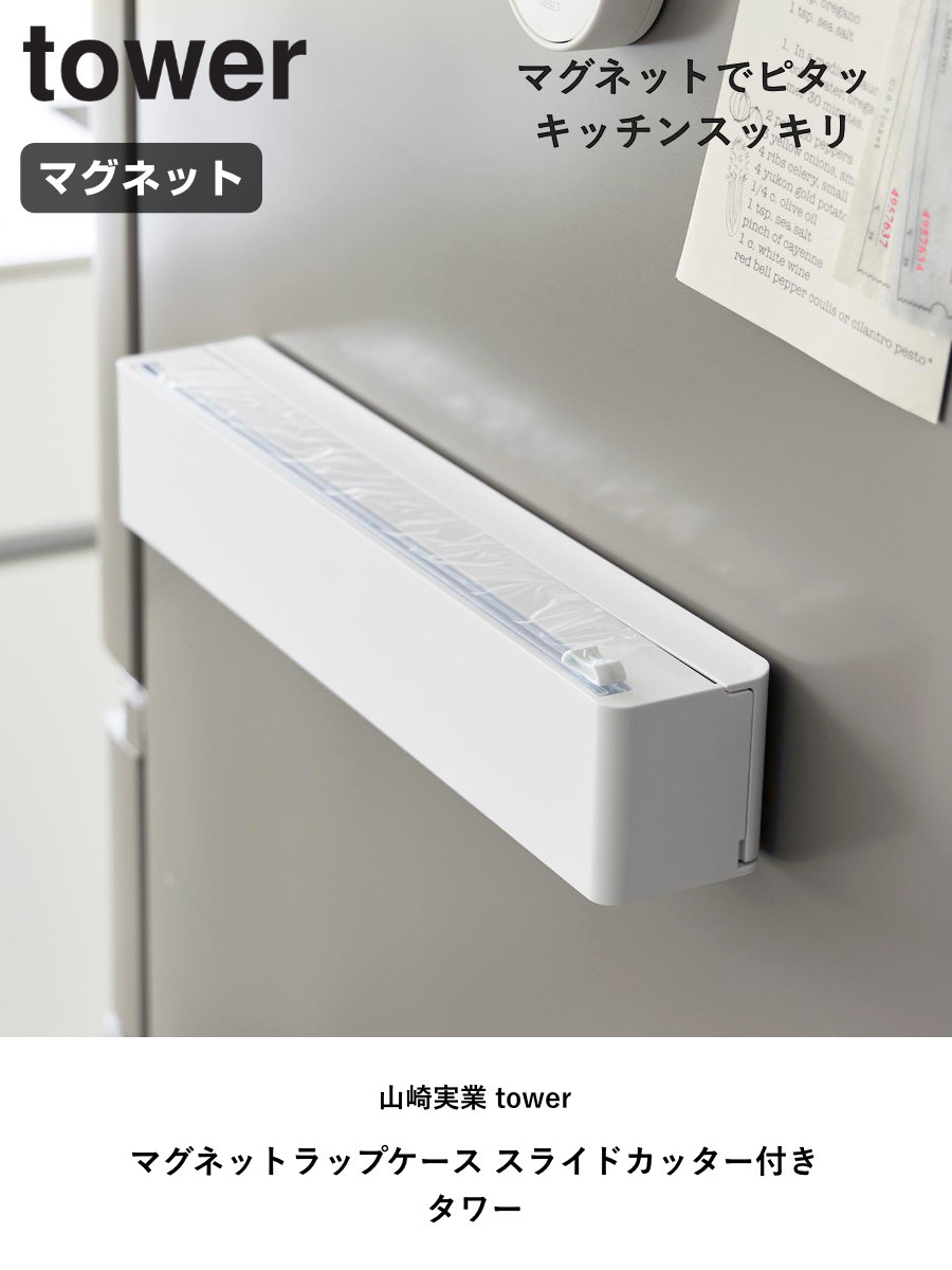 ラップホルダー マグネット ラップ収納 ラップ スライドカッター 4903208106597 yamazaki towerシリーズ 山実 YAMAZAKI 山崎 やまじつ 白 黒 モノトーン 無地 シンプル スタイリッシュ LH4947 LH20302