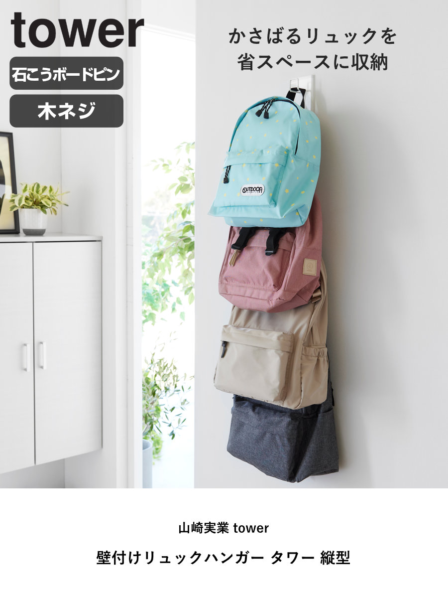 壁付け リュック ハンガー かばん リュックサック ランリュック ランドセル 4903208105804 yamazaki towerシリーズ 山実 YAMAZAKI 山崎 やまじつ 白 黒 モノトーン 無地 スタイリッシュ シンプル ホワイト ブラック 帽子 通学 通学グッズ LH20302