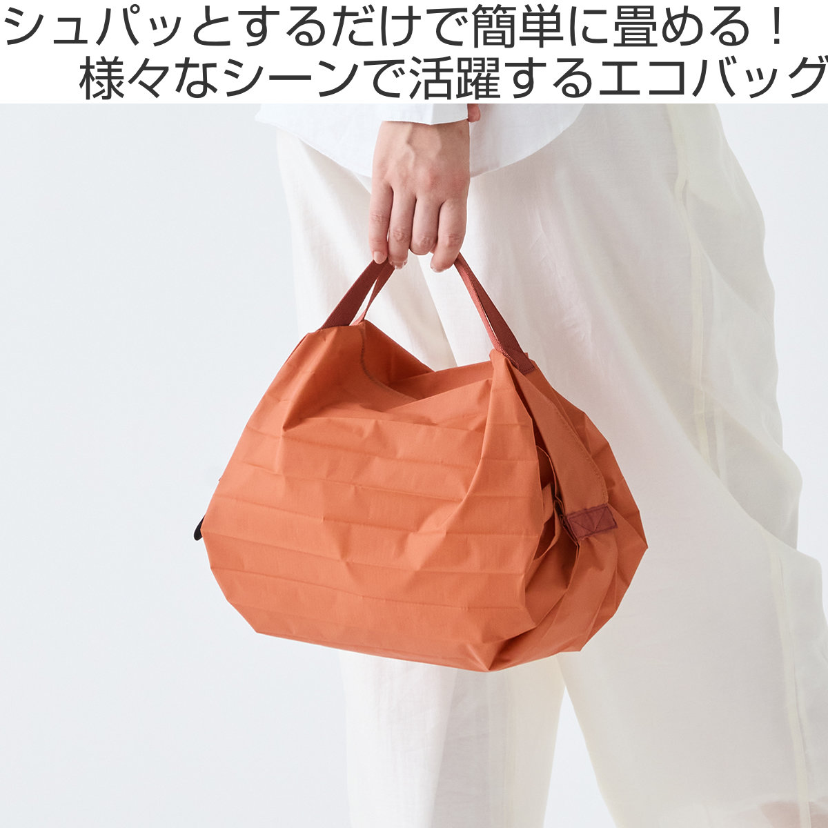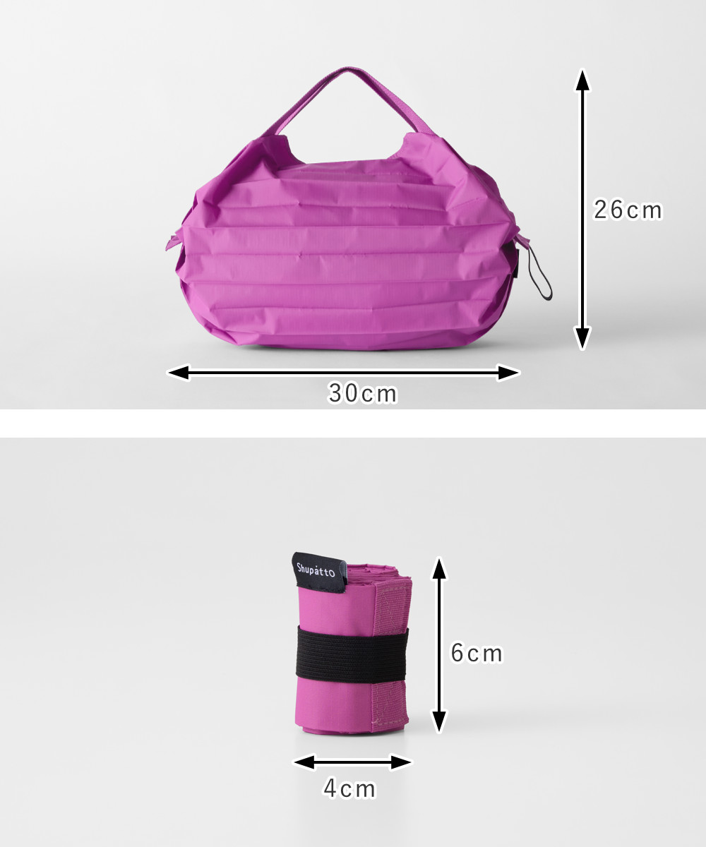 ●両側を引っ張るだけで「シュパッと」一気にたためるコンパクトエコバッグ・Sサイズです。