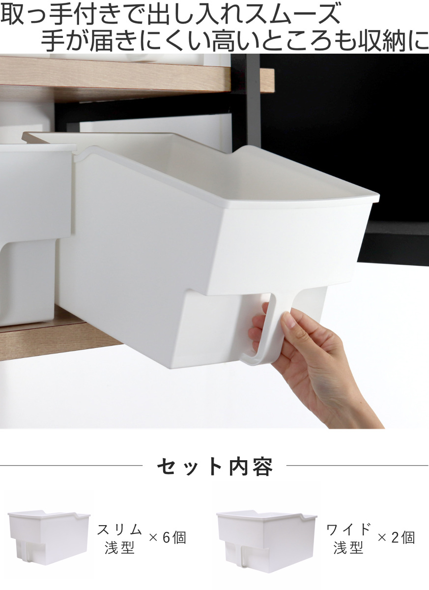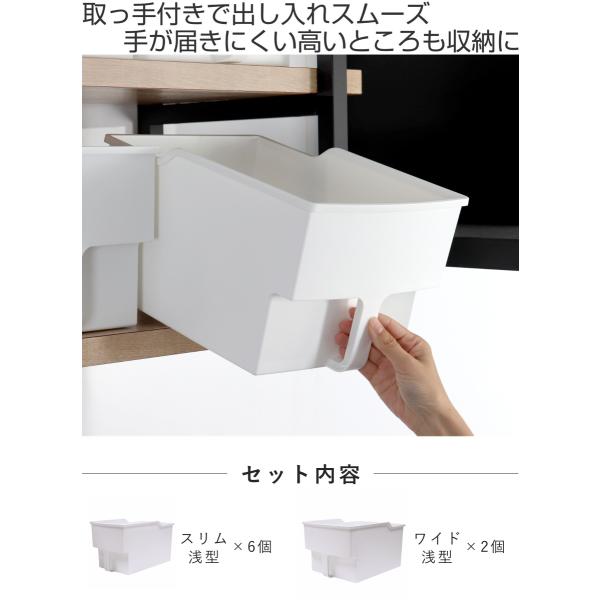 吊戸棚ボックス スリム浅型6個 ワイド浅型2個 ( 幅18.5cm 幅24cm キッチンストッカー 取っ手付き 吊戸棚 ケース ボックス 吊り戸棚ストッカー )