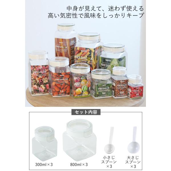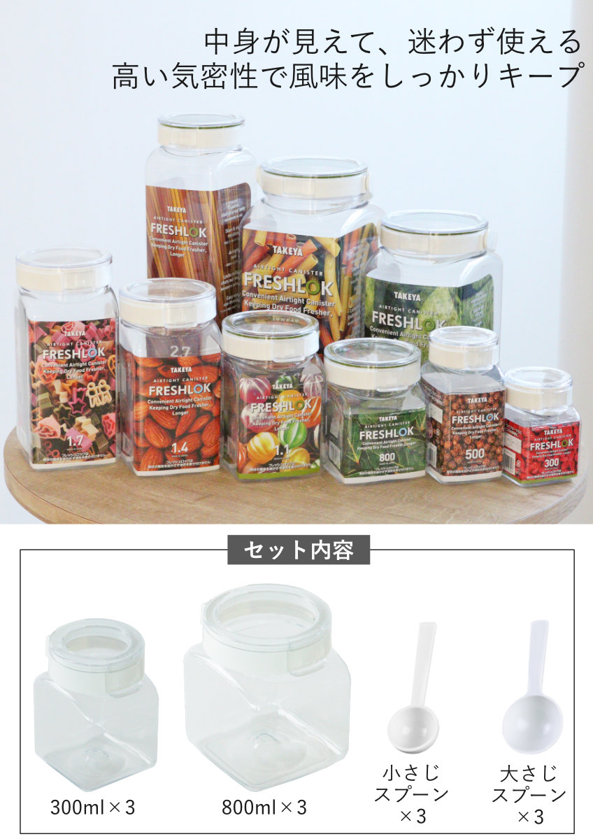 (限定カラーグレー) 保存容器 フレッシュロック 300ml 800ml 各3個セット 計量スプーン付き ( キッチン収納 キャニスター 調味料入れ ストッカー 密閉 )