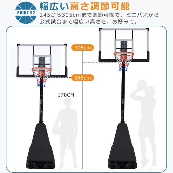 バスケットゴール 公式&ミニバス対応 高さ調節 移動可 工具付き バックボード リング ミニバス 屋外用
