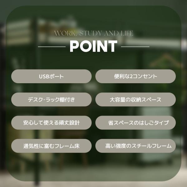 ロフトベッド ハイタイプ パイプベッド ベッド シングル コンパクト コンセント付き デスク付き USB 大人用 スチール 耐震
