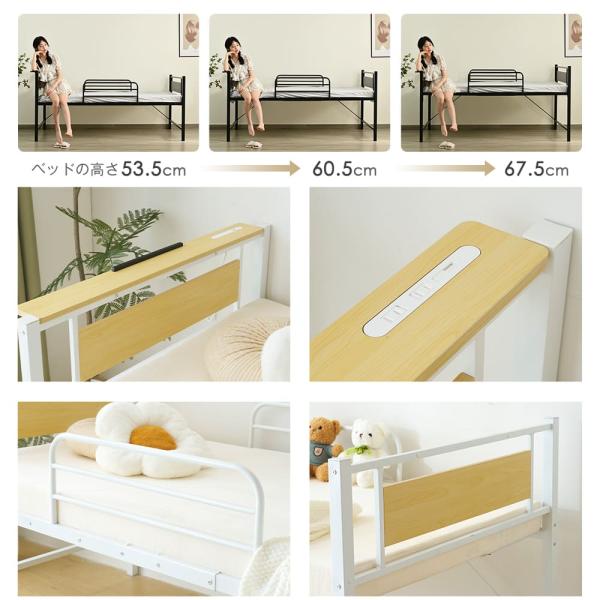ベッド シングル 収納 おしゃれ パイプベッド ベッドフレーム シングルベッド 高さ調節 コンセント付 スチール ベット一人暮らし