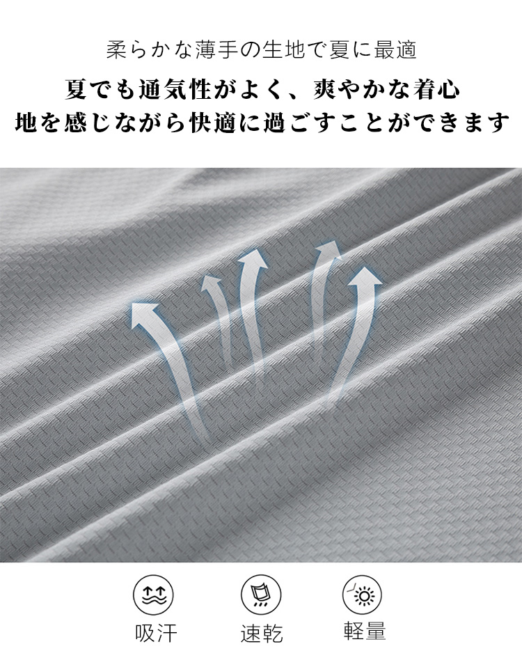 夏でも通気性がよく、爽やかな着心地を感じながら快適に過ごすことができます。