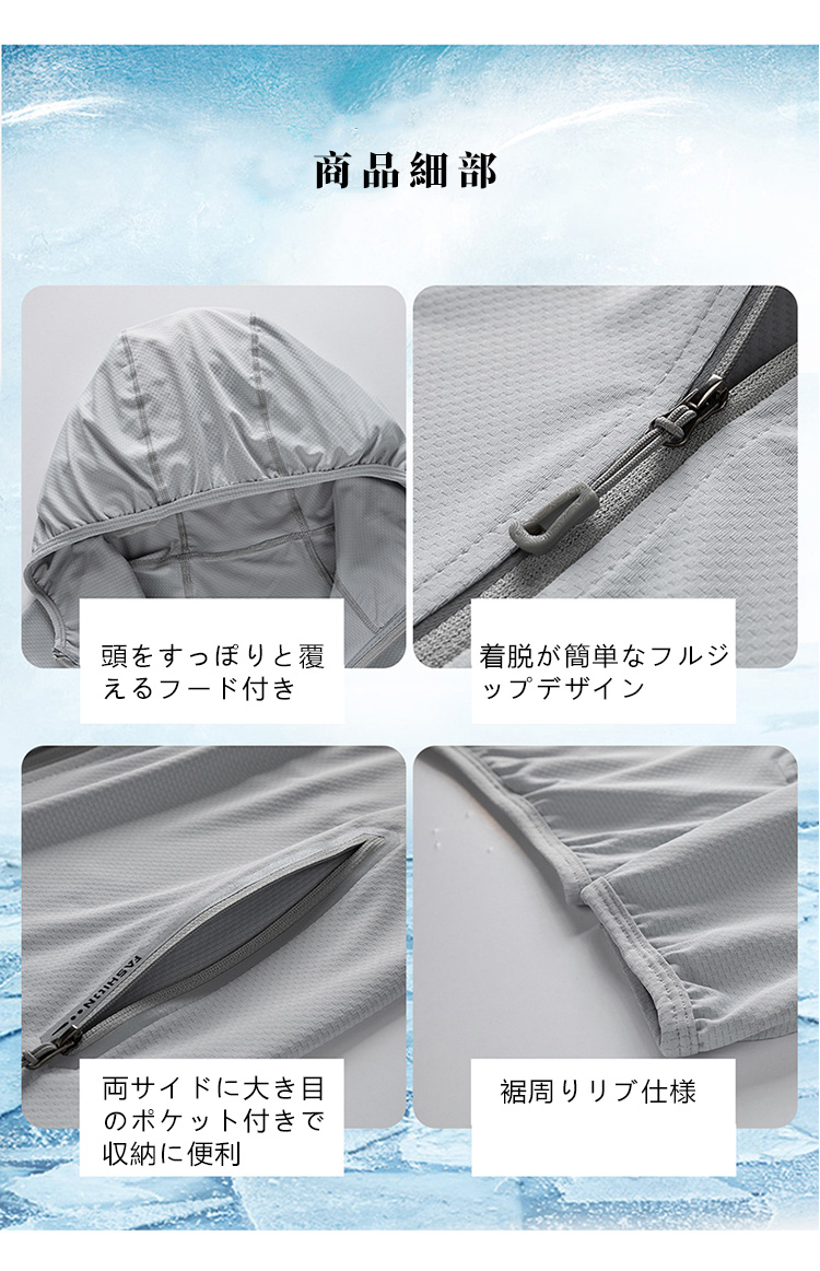 ラッシュガード UV パーカー 接触冷感 吸水速乾 UVカット 長袖 遮光 コーディング メッシュ 通気口 指穴 取り外し サンバイザー 日焼け防止 トップス 紫外線対策