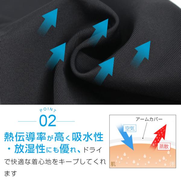 【接触冷感】厳選された薄くて涼しい冷感生地で、水や汗で濡れると気化熱の作用により冷却効果があり、肌と接触した瞬間に温度が3-5度を下が、真夏中でもクールを感じられる冷感アームカバーです。