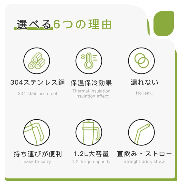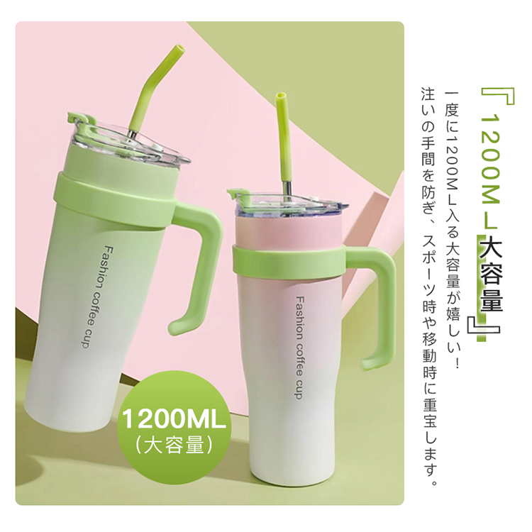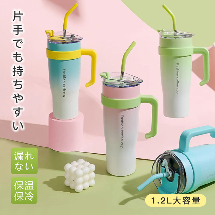 タンブラー 水筒 1.2L 大容量 ステンレス 保温 保冷 直飲み ストロー ハンドル付き 漏れない 防塵 抗菌 シンプル おしゃれ 運動会 ピクニック ギフト