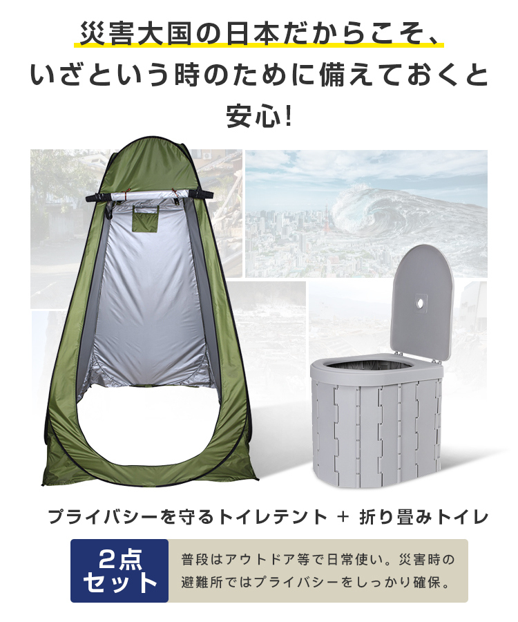 簡易トイレ テント セット 収納 非常用トイレ 防災トイレ 災害用 水洗 凝固剤 携帯トイレ 折りたたみ 介護 処理袋 キャンプ アウトドア 避難 緊急 防災グッズ