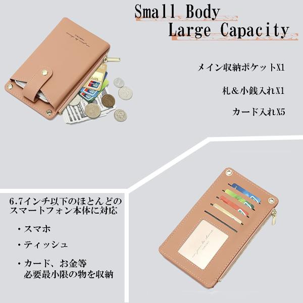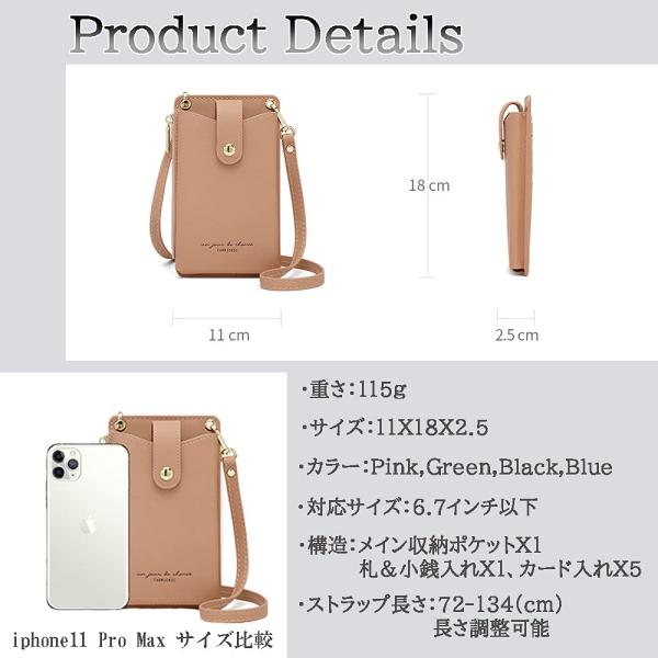 【サイズ・仕様】約11×18×2.5cm(ショルダーストラップの長さ/72〜134cm)メインポケットX1、お札&小銭入れX1、カード入れ×5、(iphone11Pro Max5.5一台収納可)