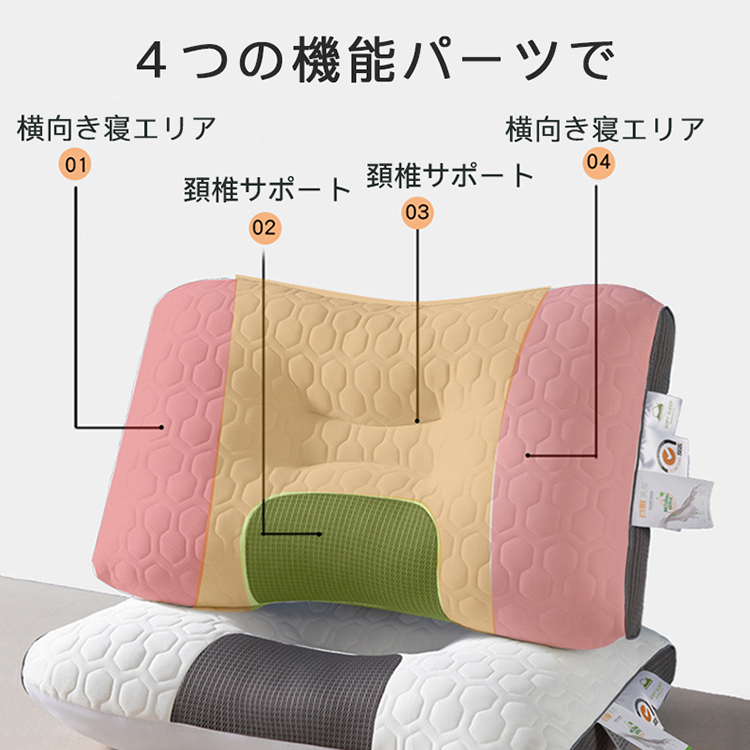 枕 マクラ 横向き対応 肩こり 首の痛み 首が疲れない 安眠枕 快眠枕 頸椎ケア枕 頚椎保護枕 頸椎牽引ケア 健康グッズ 人間工学 まくら