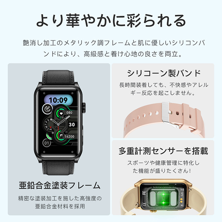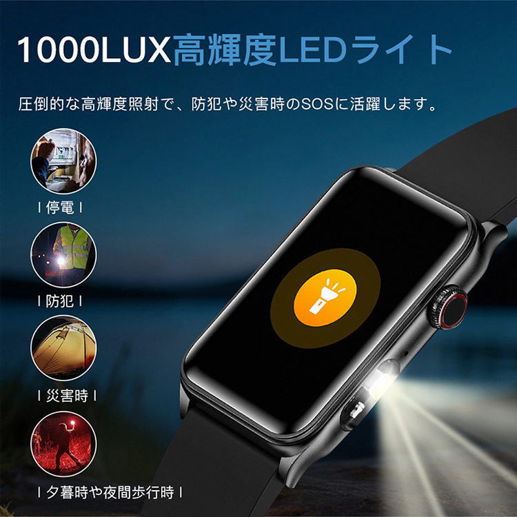 スマートウォッチ 日本製センサー 血圧測定 Bluetooth音声通話 着信通知 心拍数 血中酸素 睡眠モニター 24H健康管理 運動記録 ledライト メンズ レディース 2026