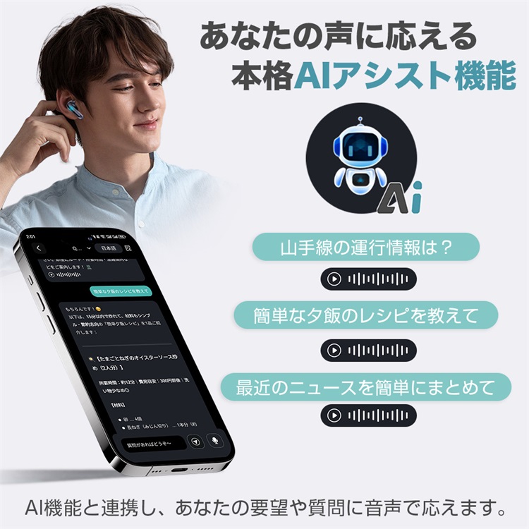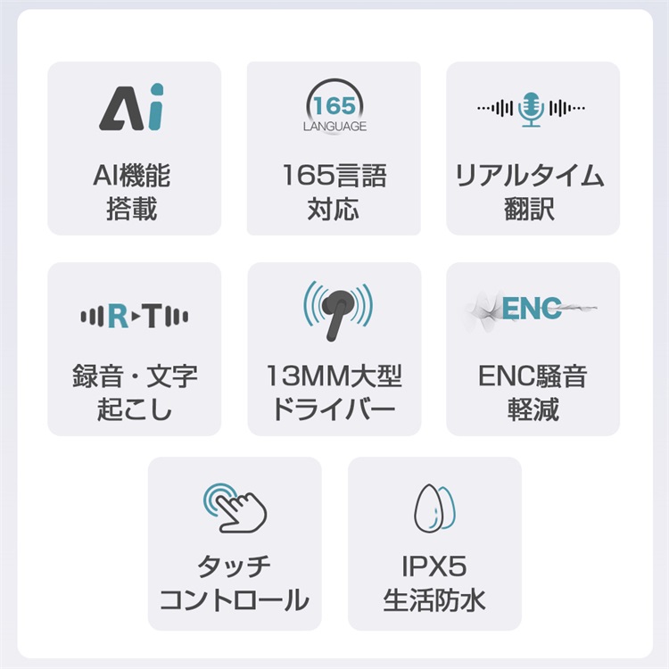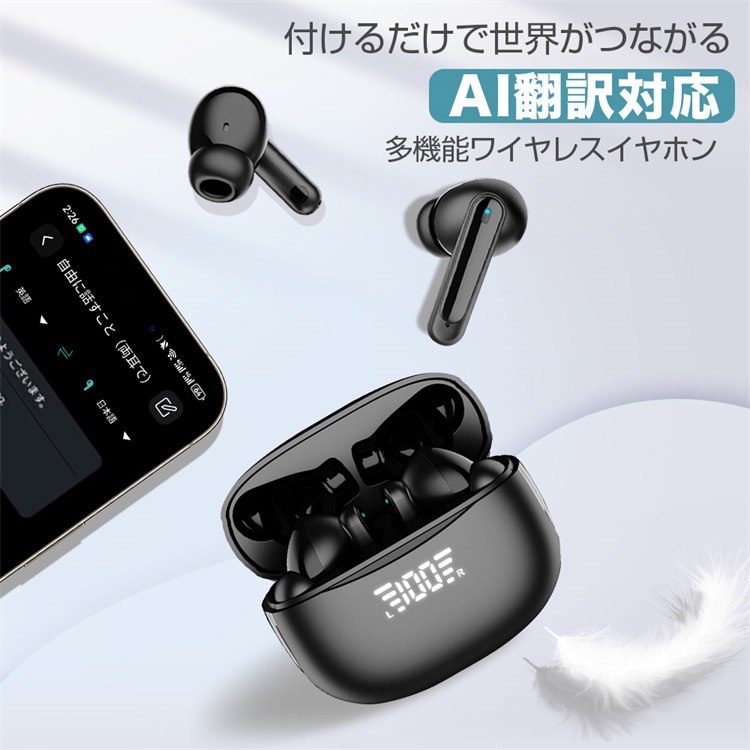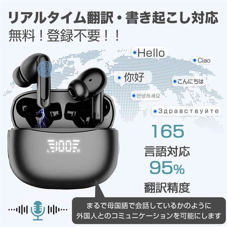 ワイヤレスイヤホン AI翻訳 音声翻訳機 165言語対応 95%翻訳精度 写真翻訳 リアルタイム翻訳 ENC騒音軽減 生活防水 イヤホン ワイヤレス 接続安定 クリアな通話