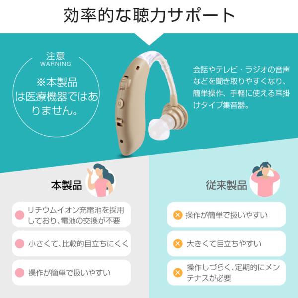 ※ご注意:集音器は特殊な電子製品なので、起動時にわずかな電流音が出したが、これは正常な現象であり、製品の品質上の問題ではありません。 ビデオと取扱説明書を参照して、集音器にゆっくり適応してください。