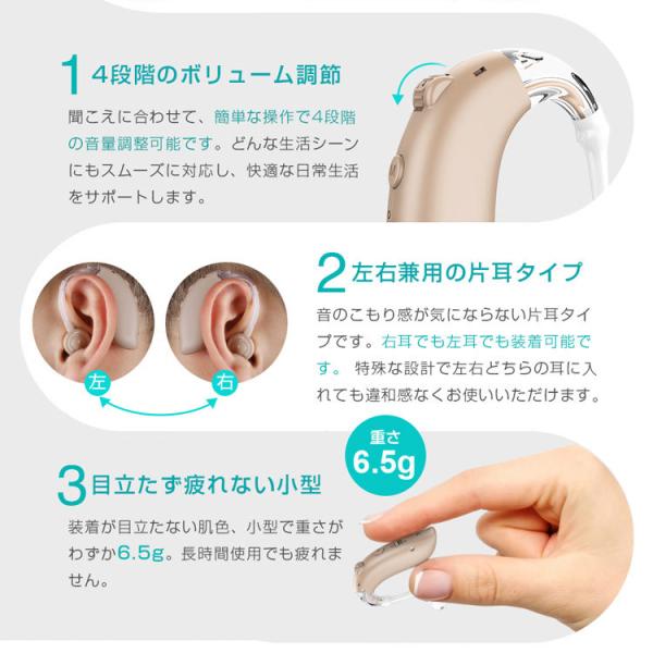▲両耳に適用&耳かけ式集音器
