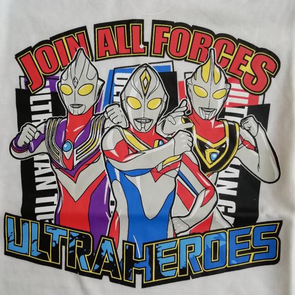 ウルトラヒーローズ 綿100% 半袖Tシャツ TR8866 ホワイト 110cm/120cm ウルトラマンティガ ウルトラマンダイナ ウルトラマンガイア