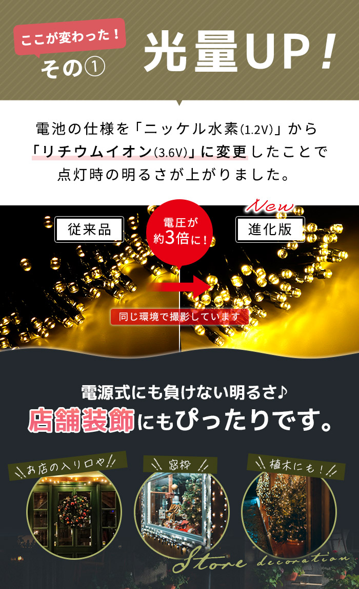 内蔵バッテリーをニッケル水素充電池からリチウムイオン充電池に変更したことで点灯時の明るさがアップ。