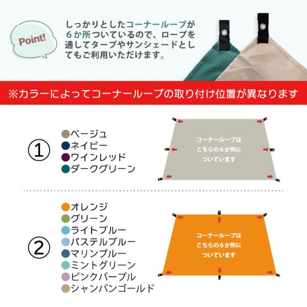 コーナーループ ペグ穴 ロープ付 レジャーシート 4人〜8人