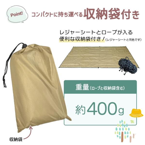 レジャーシート 大判 200×300cm 収納袋/ロープ付 全12色