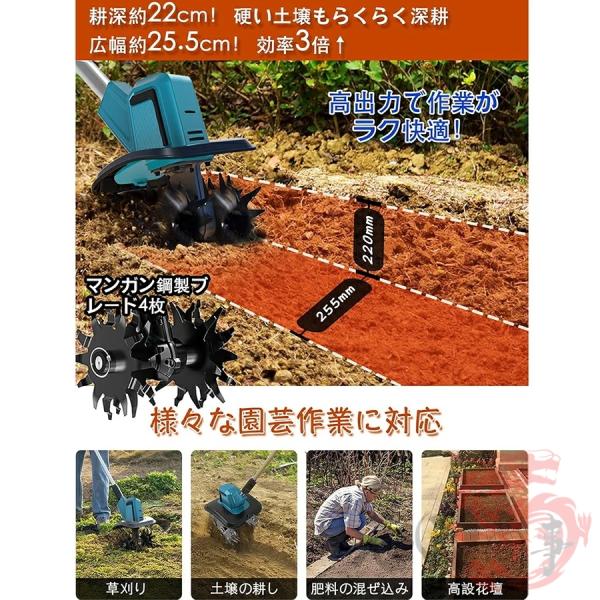 電動耕運機 耕運機 充電式 電動 ミニ耕運機 耕うん機 マキタ 21Vバッテリー互換 小型 伸縮式 耕耘機 充電式 農業土耕す 軽量 安全 家庭菜園 家庭用 女性 2026