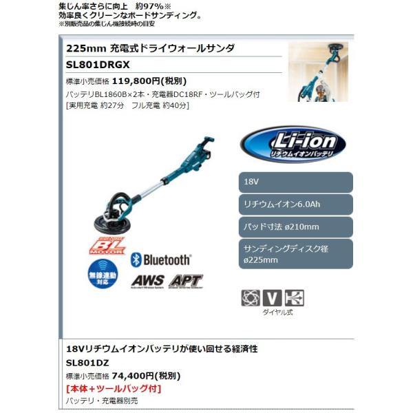 マキタ 18V 225mm 充電式ドライウォールサンダ SL801DZ 本体+ツールバッグ付(バッテリ・充電器別売)