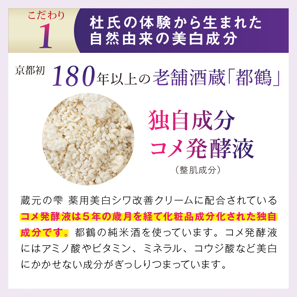 キーワード:蔵元の雫 薬用美白シワ改善クリーム 医薬部外品 コメ発酵液 ナイアシンアミド シミ 美白 シワ改善 肌荒れ防止 くすみ 酒蔵 日本酒 杜氏 シワ エイジングケア肌荒れ 京都 クリーム 美容クリーム ほうれい線 目元のシワ 手のシミ シミ隠し ホワイトニング レディース メンズ 男性 しみ シミソバカス ハリ 透明感 メラニン 無香料 黒ずみ AHA 毛穴 シミケア 紫外線 ケア 40代 50代 60代 医薬部外品 角質 有効成分 浸透 薬用 美白美容 くすみ 対策 薬用美白 シミケア シミ集中ケア しみ対策 アイクリーム 人気 おすすめ オススメ シミクリーム 顔シミ 男性 美白クリーム