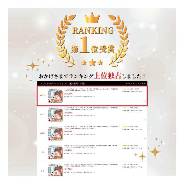 写真台紙屋さんのキャンバスプリント。注文前お試しデザインOK