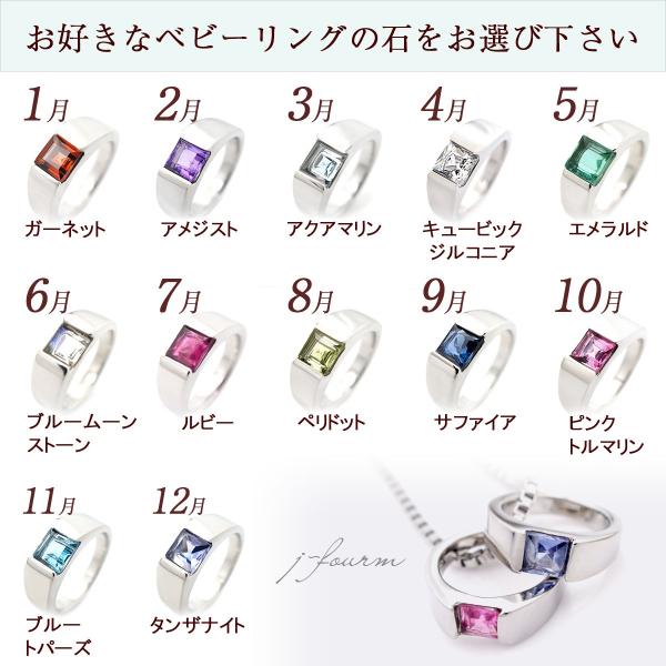 ベビーリング ネックレス ステンレス 送料無料 金属アレルギーに優しい 誕生石 スクエア3mm チャーム 出産 内祝い 指輪
