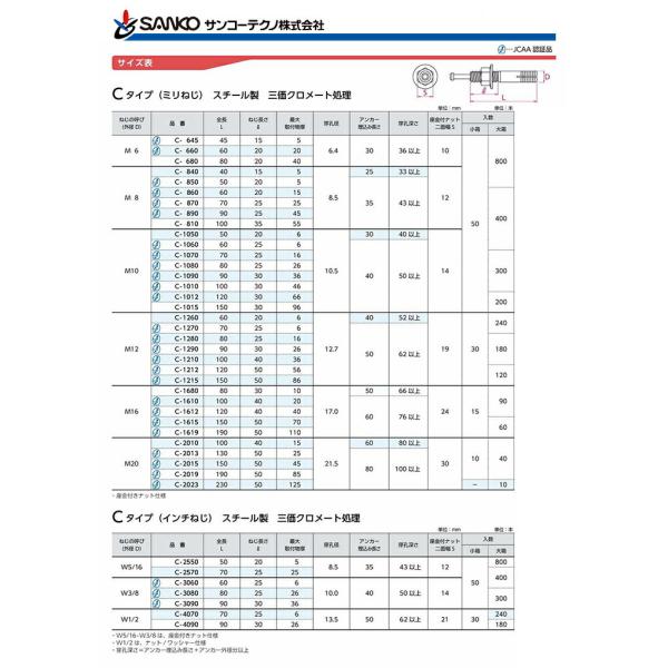 サンコーテクノ株式会社 オールアンカー スチールミリネジ C-1210 一箱・30本入