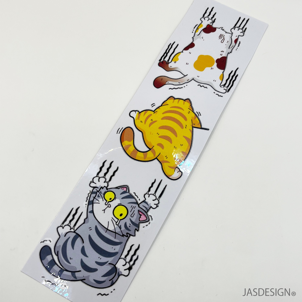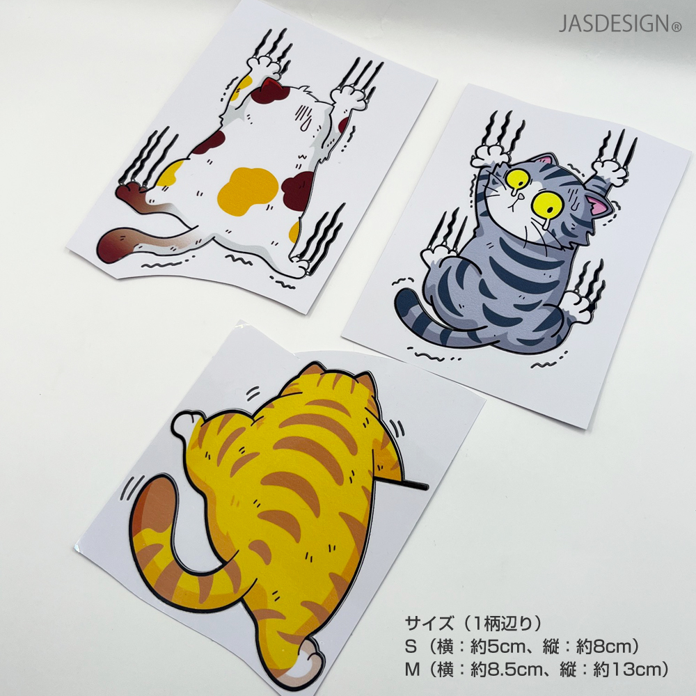 ズリ落ちる後ろ姿がたまらなくキュートな猫ステッカーです。思わずクスッとしてしまう可愛さ♪