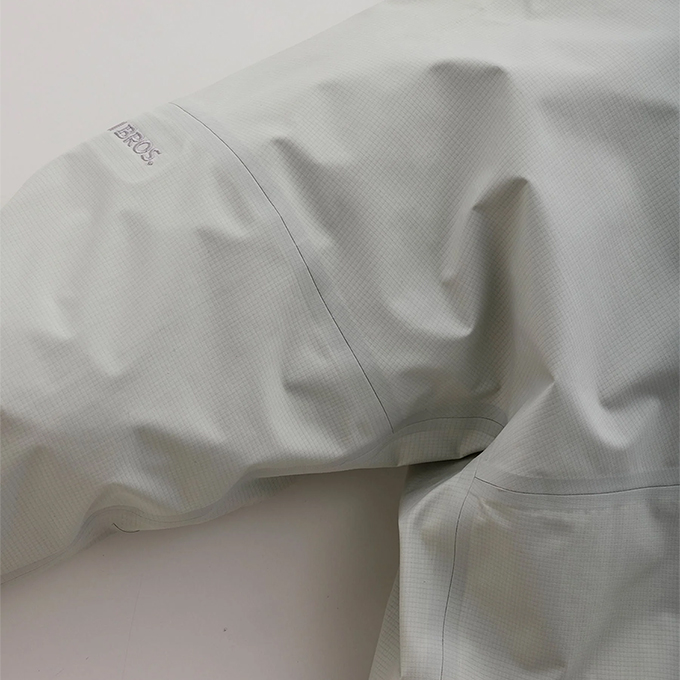 アイスクライミング用に開発されたTSURUGI JACKETを春夏向けにリデザインしたTSURUGI LITE JACKETは、しなやかな着心地を追求して大部分に超音波圧着を採用しています。