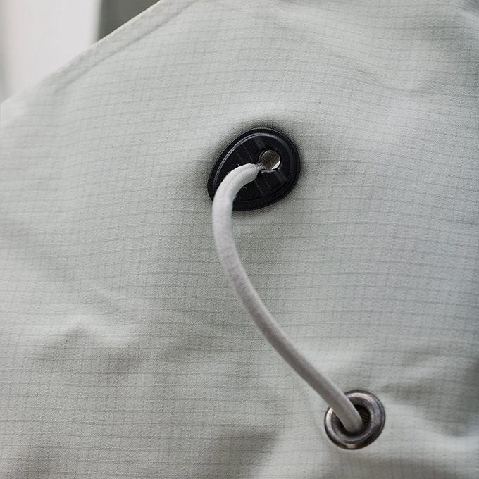 また、襟の高さや、フード調整用ドローコードのアイレットストッパーの角度なども見直し、細部まで妥協することなく完成度を高めています。