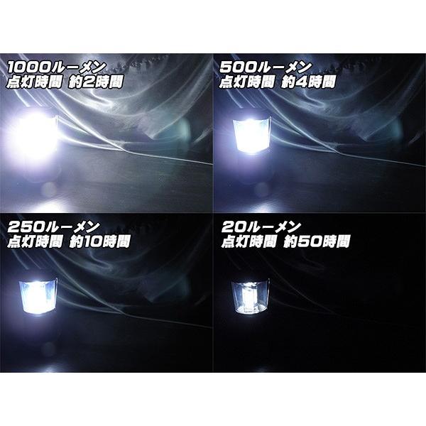 本体正面の電源ボタンを押す毎に1000ルーメン→500ルーメン→