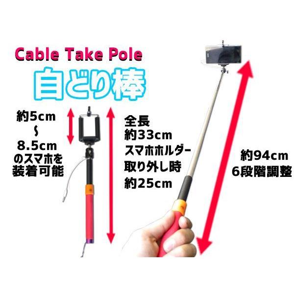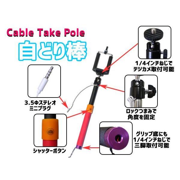 じどり棒 設定簡単 有線接続 自分撮り Cable Take Pole ケーブルテイクポール セルカ棒 自撮り棒 セルフィースティック デジカメ スマホ用一脚