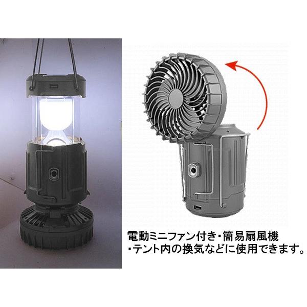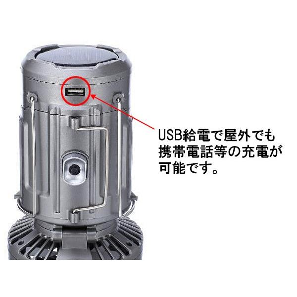 LED ポータブル ランタン ソーラーパネル コンセント 充電 乾電池 電源 ミニファン 扇風機付き アウトドア GSH シルバー 小 odr
