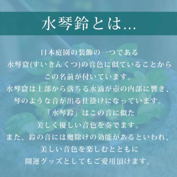 ・日本庭園の装飾の一つである水琴窟(すいきんくつ)の音色に似ていることからこの名前がついています。