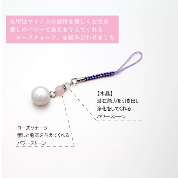 ・チャームには丸型はマイナスな感情を優しくなだめ、癒しのパワーで勇気をくれる「ローズクォーツ」を、雫型はマイナスエネルギーを浄化し、希望の光で心を満たしてくれる「アメジスト」を組み合わせました。