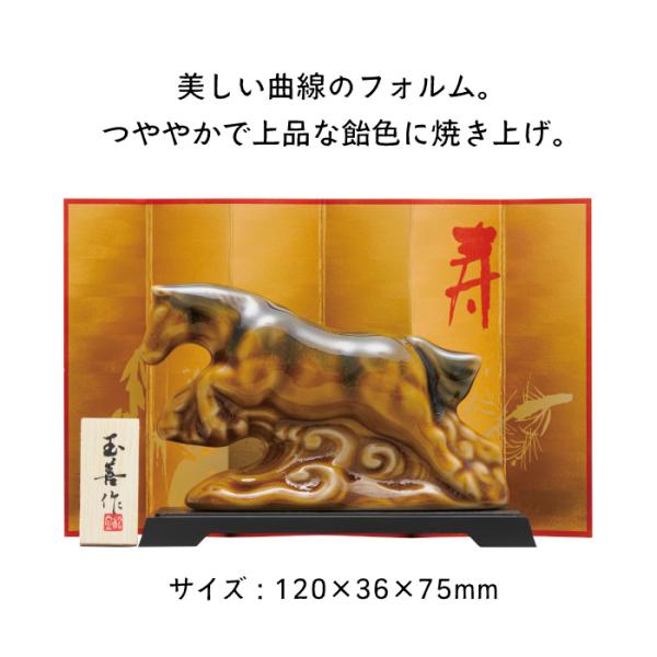 開運 干支置き物 午あめ釉 2026年 令和8年 新春 正月 正月飾り 縁起物 十二支 うま 馬 陶器 焼き物 焼物 釉薬 屏風 化粧箱入り 993414
