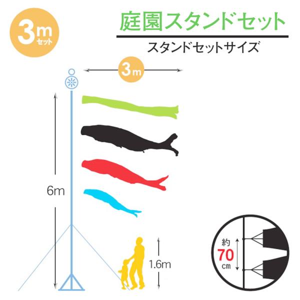 鯉のぼり こいのぼり 庭用 徳永鯉 晴れの国 大翔 庭園スタンドセット 3m 7点セット