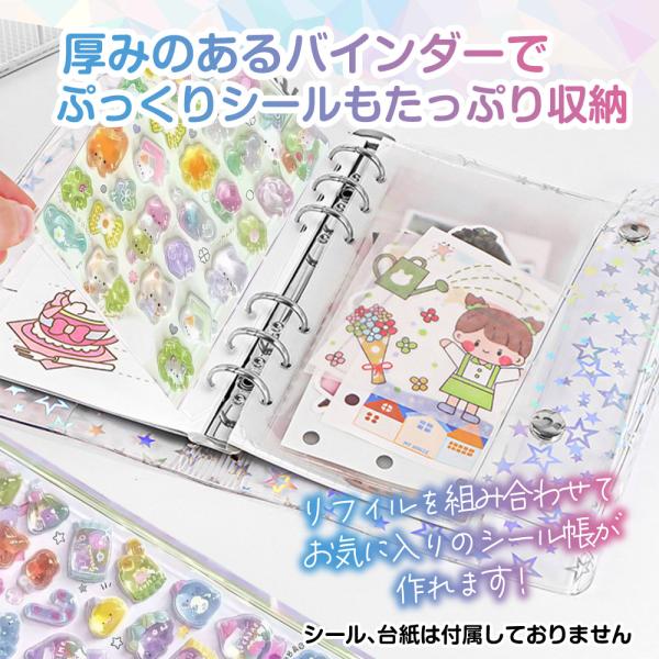 シール帳 バインダー 星柄 リフィル10枚付属 透明 クリア ホルダー ファイル ケース A7 M5 A6 はがせる 女の子 手帳 ノート メモ帳 トレカ かわいい おしゃれ