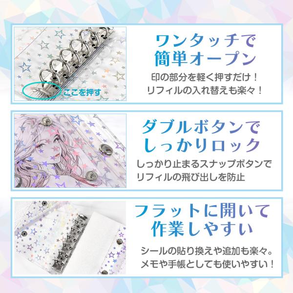 商品名:シール帳 バインダー 星柄 リフィル10枚付属 透明 クリア ホルダー ファイル ケース A7 M5 A6 はがせる 女の子 手帳 ノート メモ帳 トレカ かわいい おしゃれ
