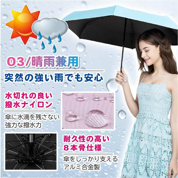 商品名:折りたたみ傘 晴雨兼用 レディース 完全遮光 かわいい おしゃれ 日傘 軽量 UV 紫外線 折り畳み ケース付き 8本骨 8色 撥水 メンズ