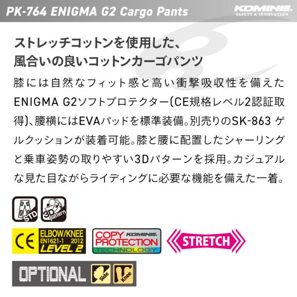 コミネ PK-764 エニグマG2カーゴパンツ KOMINE 07-764 バイク パンツ CE規格パッド付 2026年春夏モデル